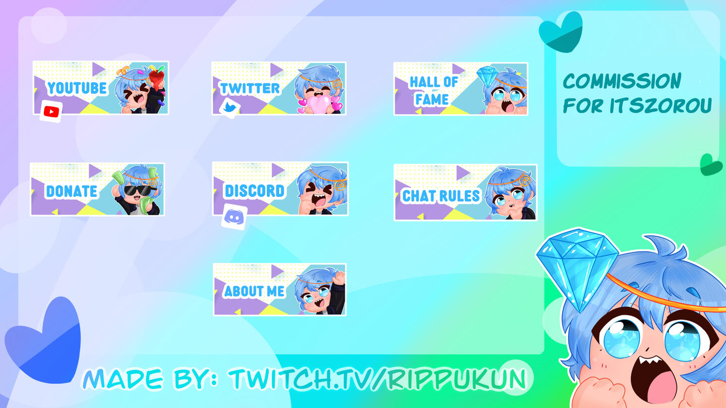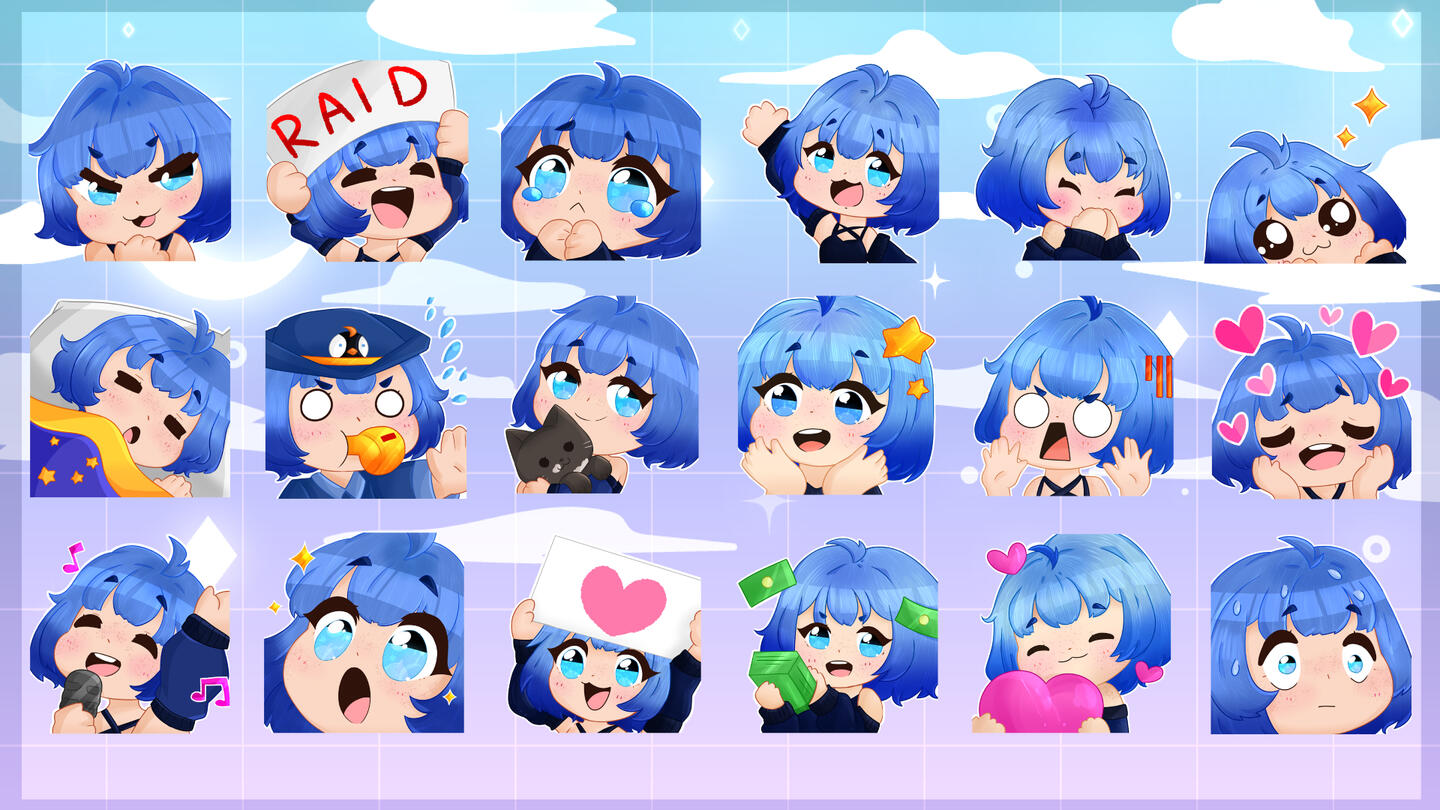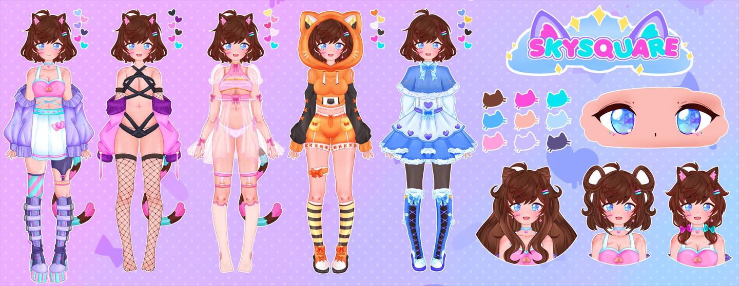 ✮ Vtuber Starterpack (Includes: halfbody fully rigged model + 3 emotes + 3 panels + icon + outfit reference + banner + chibi) - €145 / $170,56